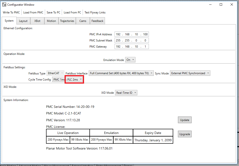 Step 2: Make sure that the Distributed Clock Cycle time, the Task cycle Interval, and the PMC’s Cycle Time Config PLC cycle all match