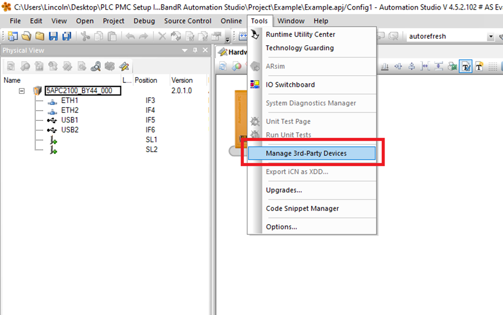 Step 1: Click Tools->Manage 3rd-Party Devices
