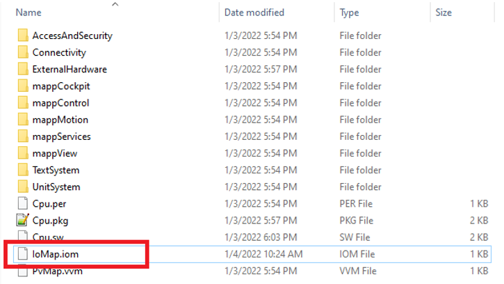 Step 8A: Alternatively, you can edit the IoMap.iom file directly. This file will be in the project directory under Physical->Config1->”Controller Name”->IoMap.iom.