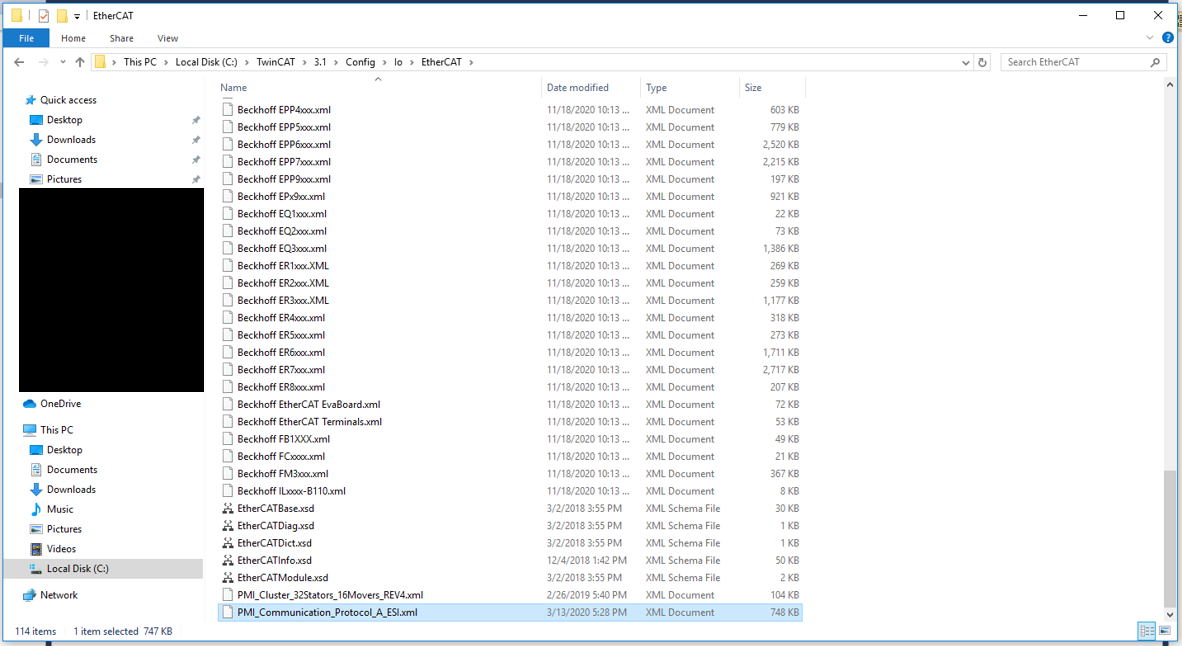 Step 1: Before starting, make sure that the included ESI (EtherCAT Slave Information) XML file is saved in the TwinCAT installation directory (default: C:\TwinCAT\IO\EtherCAT or C:\TwinCAT\3.1\Config\Io\EtherCAT)