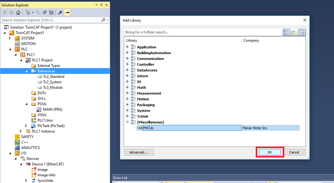 Step 5: In the Add Library window select PMCLib and click "OK"