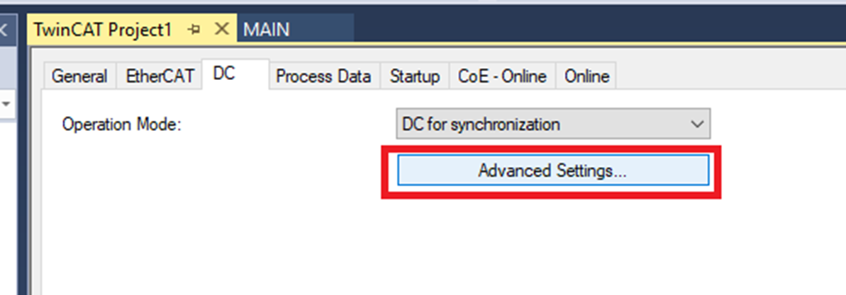 Step 2: In the resulting window select the "DC" tab and change the Operation Mode to "DC for synchronization".