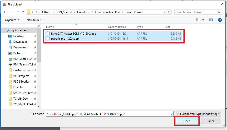 Step 6: In the File Upload window navigate to the .app files, select them, and click Open
