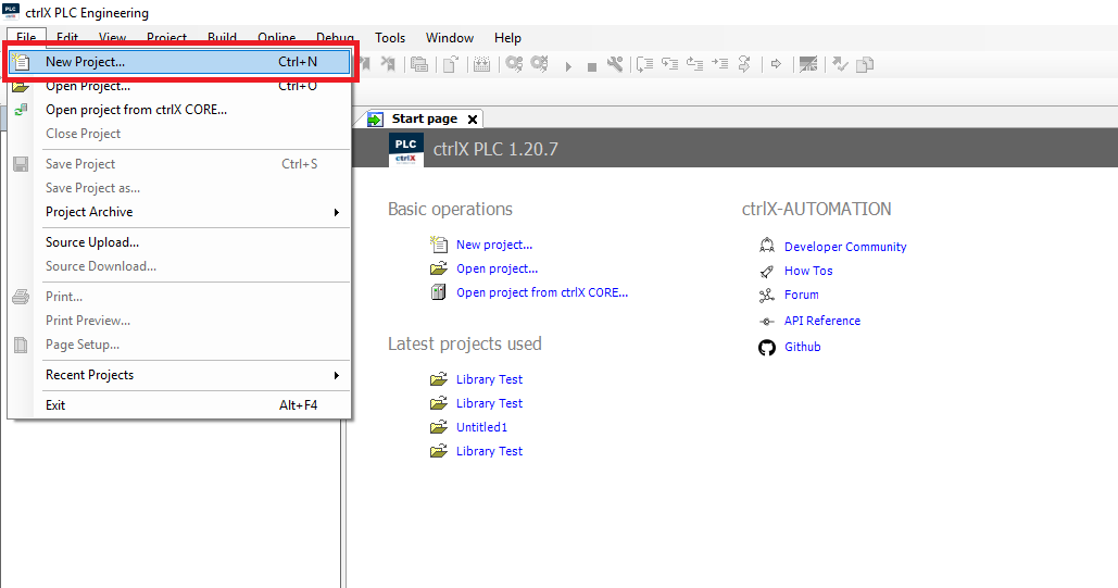 Step 3: In ctrlX PLC Engineering click File->New Project
