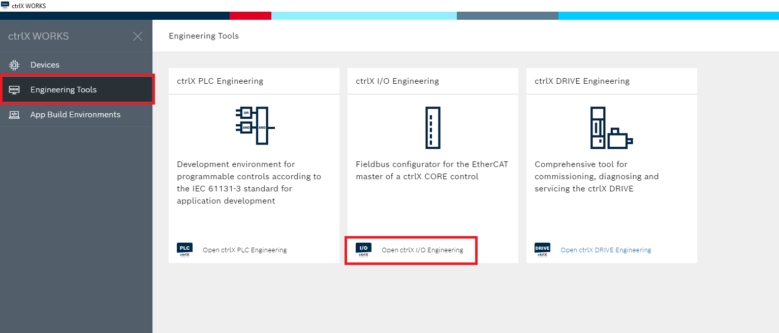 Step 6: Back in ctrlX WORKS click the Open ctrlX I/O Engineering button. This program is for editing the controller’s EtherCAT fieldbus configuration