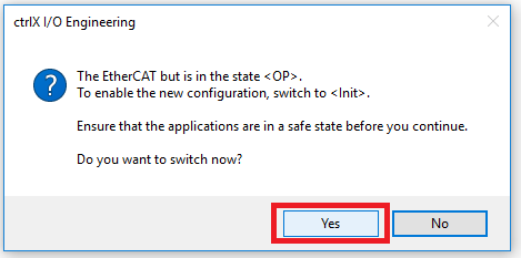 Step 17: This will load the EtherCAT configuration into the PLC project so that the PLC program can access the EtherCAT variables