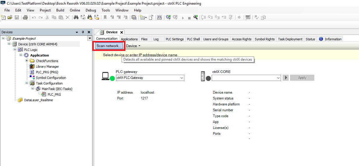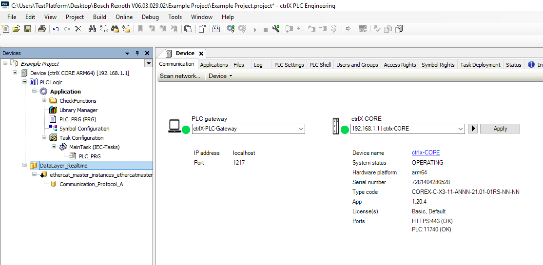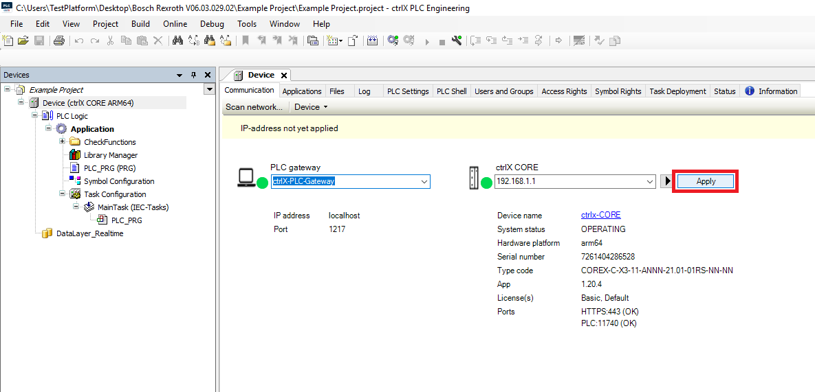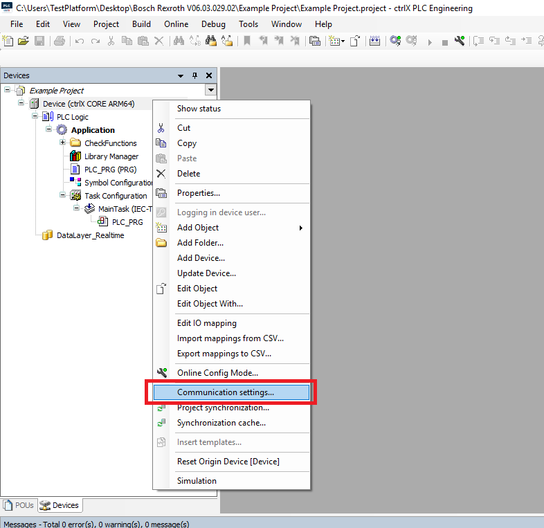 Step 12: Then in the PLC project right click the ctrlX CORE and click Communication settings
