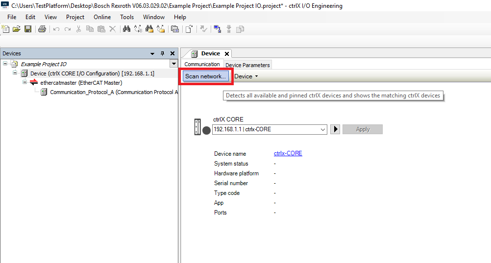 Step 13: In the Device Communication tab click the Scan network button