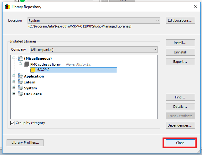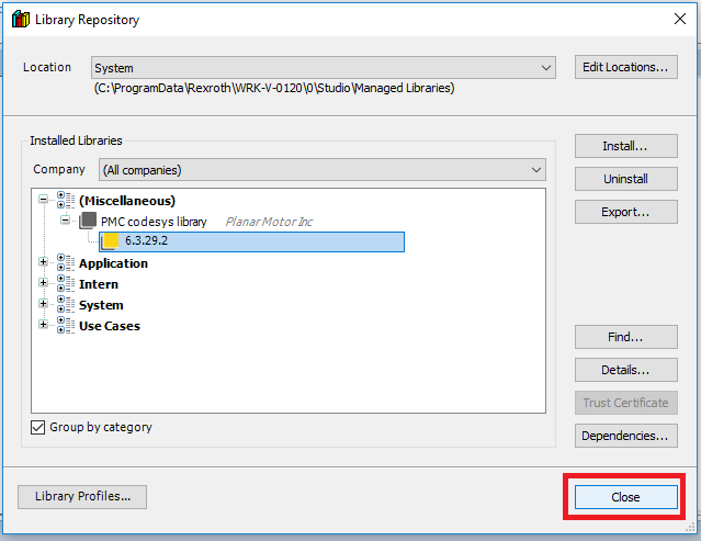 Step 7: Click Close when the new version of the PMC library is installed
