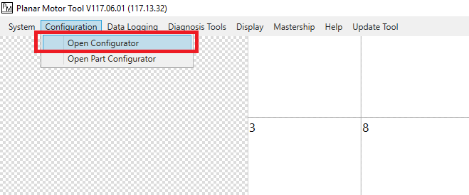 Step 2: In the Planar Motor Tool click Configuration->Open Configurator