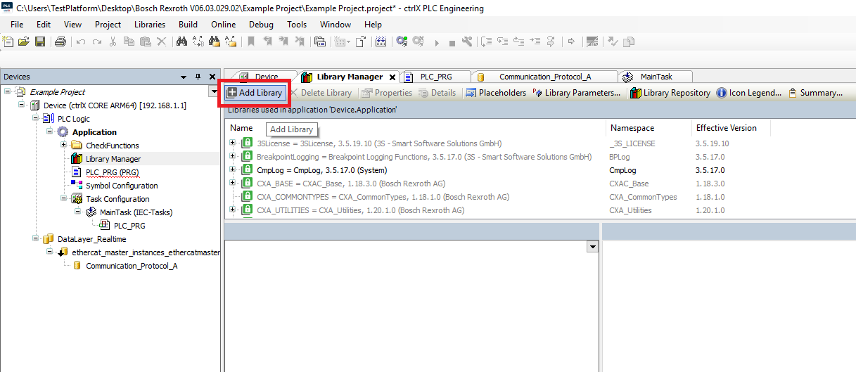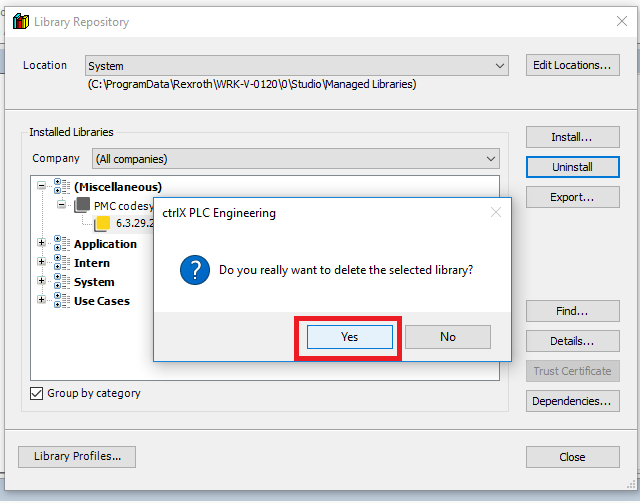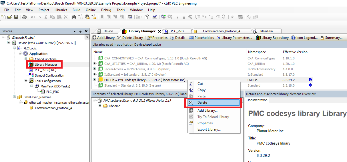Step 1: Start by going into the Devices tree and opening the Library Manager. Then delete the previous old version of the PMC library