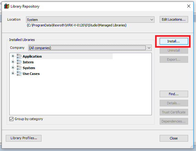 Step 2: In the Library Repository window click "Install..."