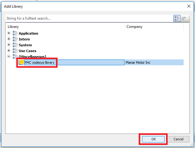 Step 6: In the Add Library window select the PMC codesys library and click OK