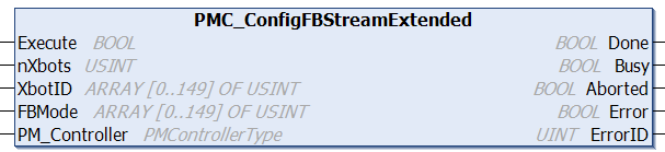 When using Real-Time Ethernet to connect to the system, each feedback frame update packet from the PMC to the Host Controller can provide detailed information for up to 150 XBots (multiplexed when total number of axis > 49). This command is used to edit which XBots are included in the frame update. See also Feedback Configuration