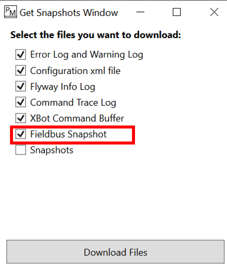 Make sure the "Fieldbus Snapshot" checkbox is selected, then click Download Files