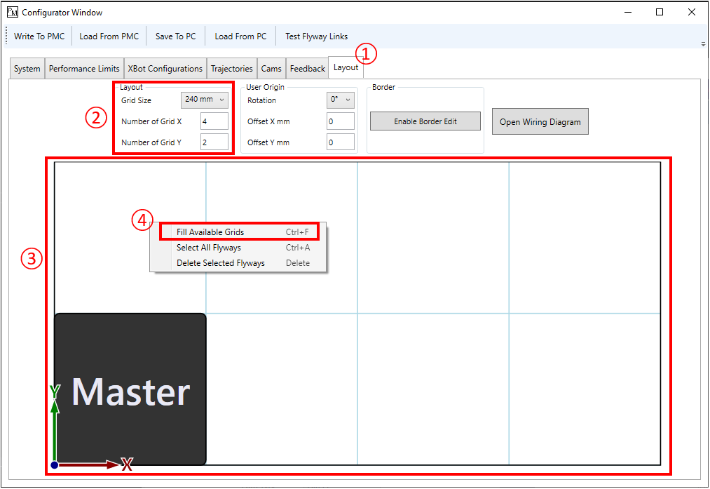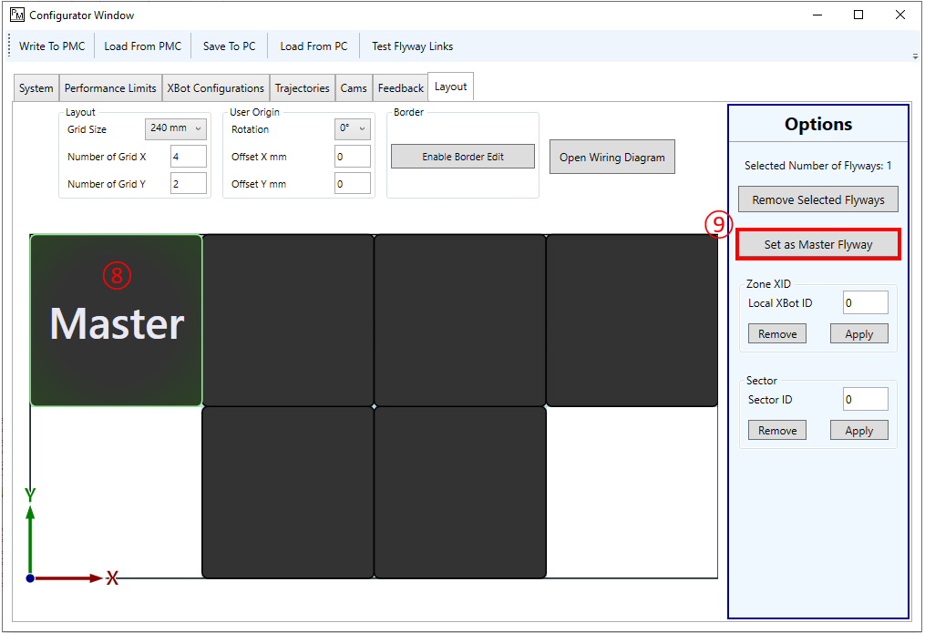 Note: if using a real system, a power cycle of the Flyways and PMC is required to apply the new layout.