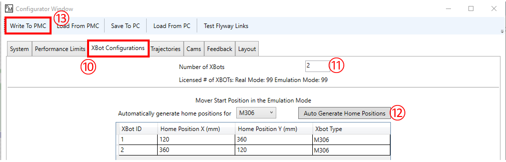 ⑫ Click on "Auto Generate Home Positions" or enter desired starting position manually (if operating in emulation mode)