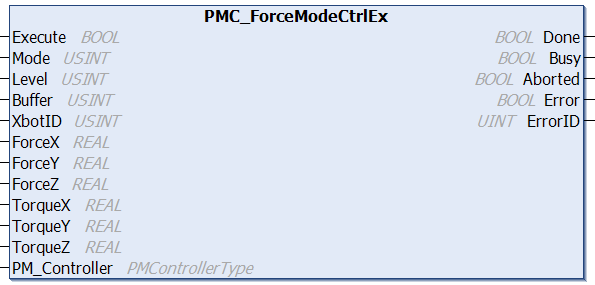 1: Enter / exit force mode command will be added to the specified mover's motion buffer. If an enter force mode command is added to a macro, then an exit force mode command must also be added after it. If not, an exit force mode command will be automatically added at the end of the macro