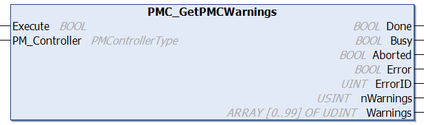 Warnings | UDINT[0..99] | All warning codes read by command. Please see Fieldbus Error Codes and Ethernet Error Codes. |