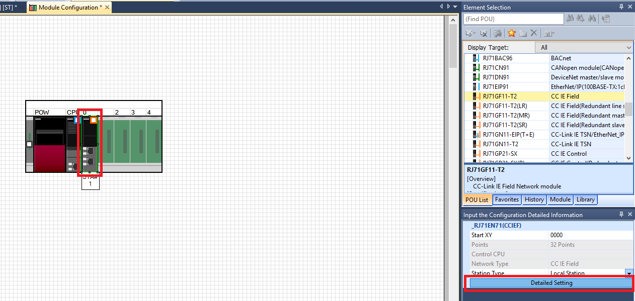 Step 10: Click the CC-Link module and click on Detailed Setting. Click Yes and OK in the confirmation windows