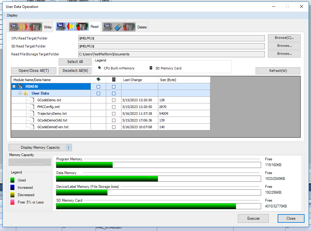 Step 2: In the Read tab you can select which files on the controller you wish to download to the computer. Read FileStorage TargetFolder is the directory where the selected files will be saved