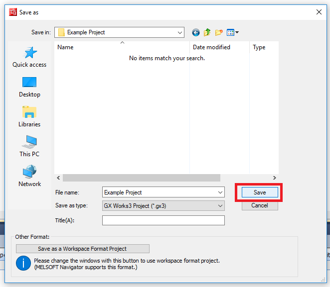 Step 5: Navigate to the directory where you want to store the project. Give the project a file name then click Save