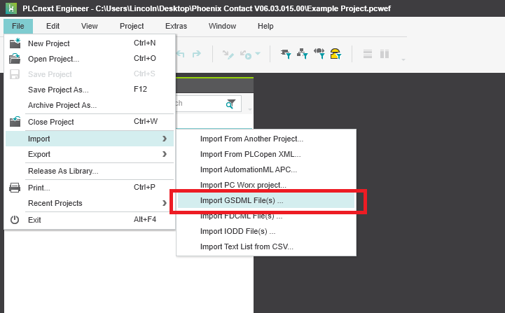 Step 1: Click File->Import->Import GSDML File(s)
