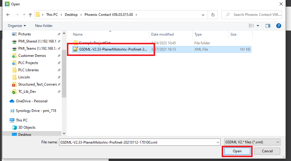Step 2: Navigate to the location of the PMC GSDML XML file, select it, and click Open