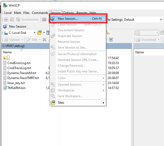 Step 3: Click Session->New Session