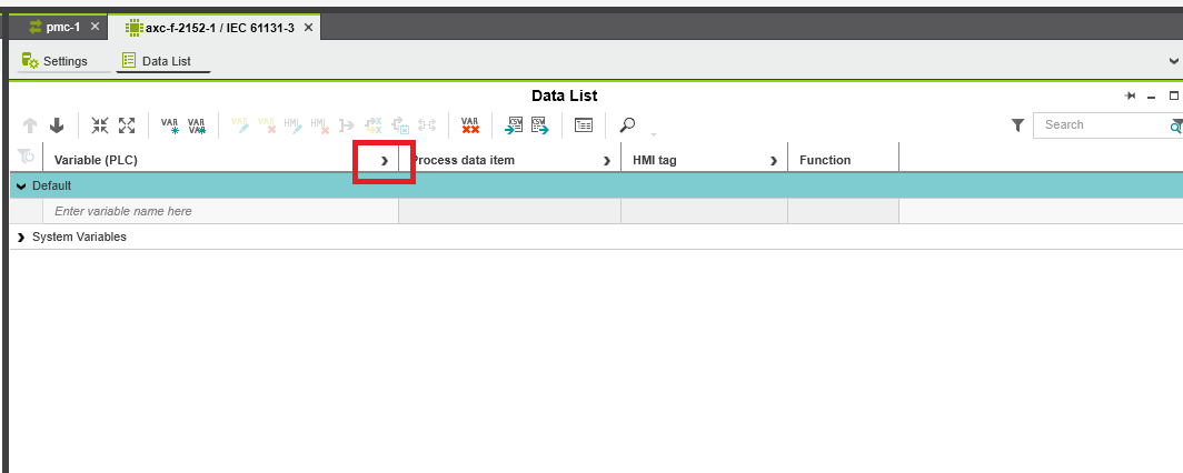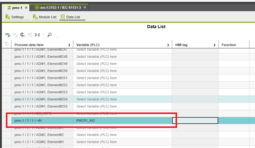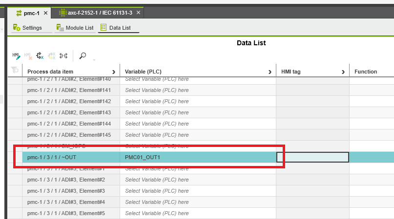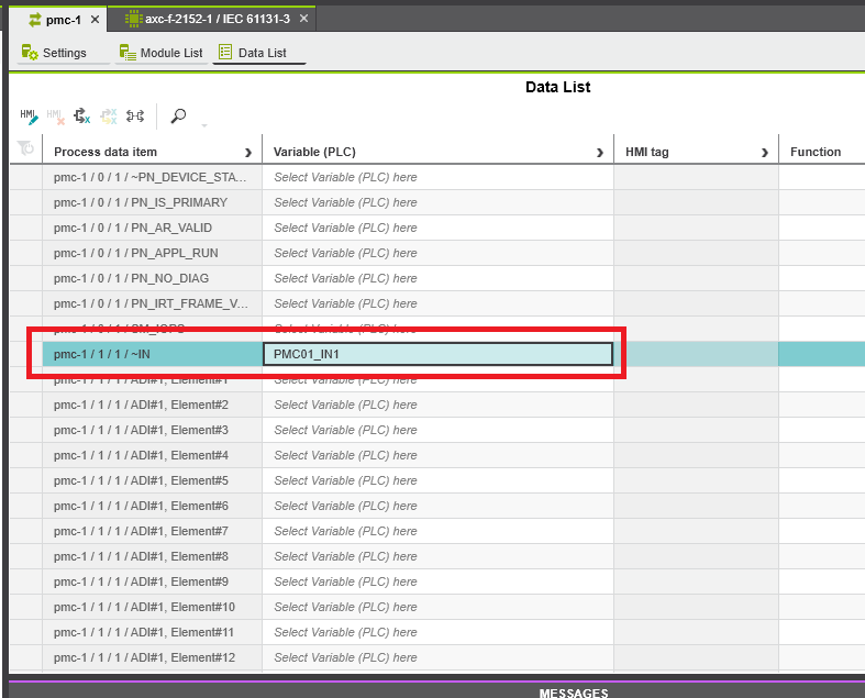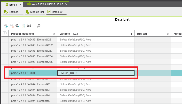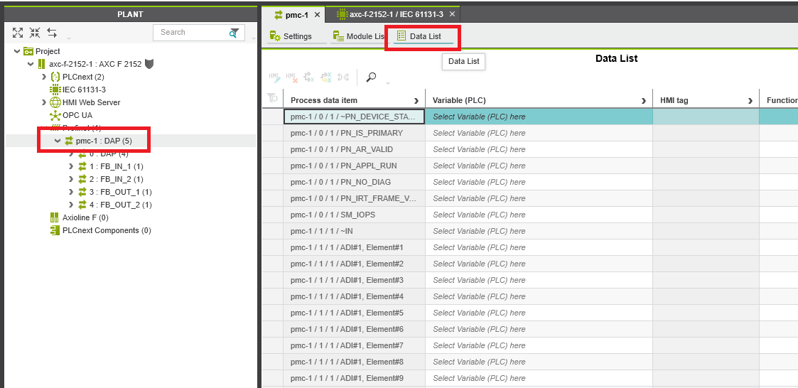 Step 6: To map the input and output double click the PMC DAP and enter the Data List tap