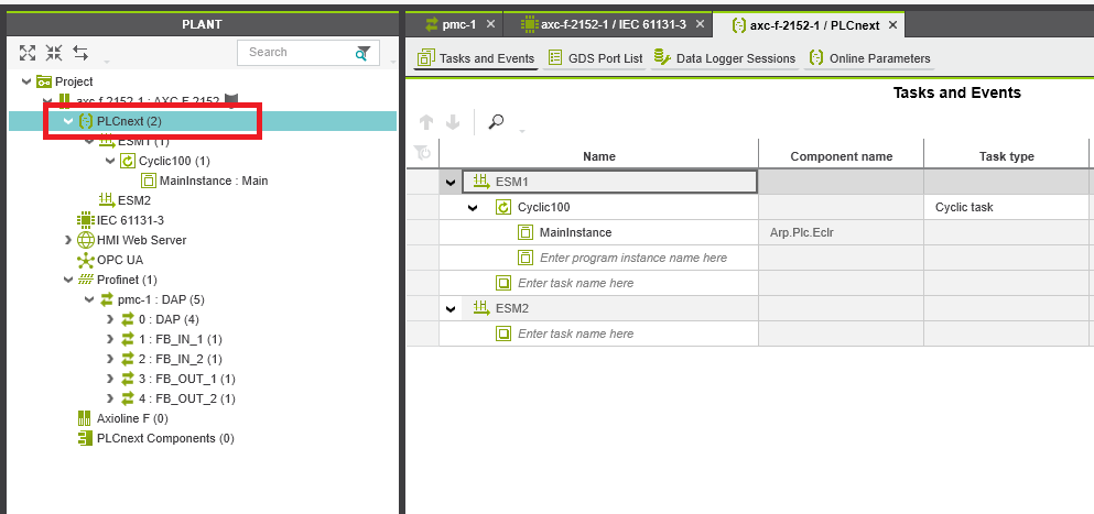 Step 11: Next we need to modify the tasks so double click the PLCnext under the controller in the Plant panel