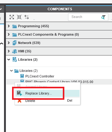Step 1: In the Libraries section of the Components panel right click the PMC library and click Replace Library