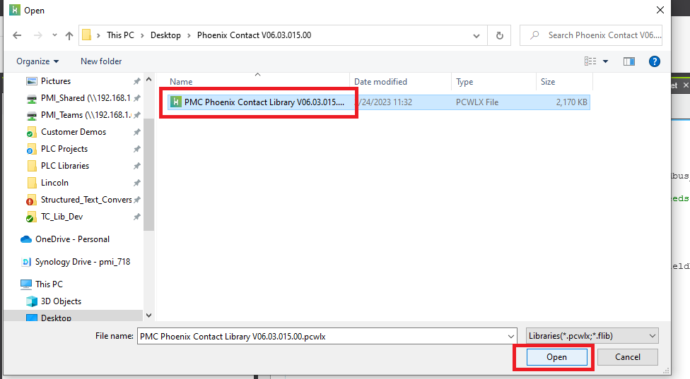 Step 2: Navigate to the location of the PMC library file and select it. Then click Open