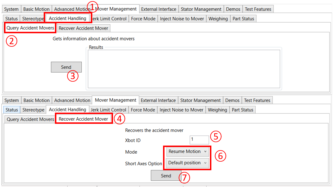 ③ Click "Send" to report the ID(s) of XBots that are currently in an accident state