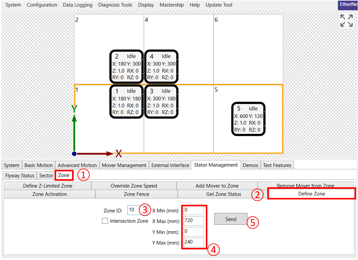 - The minimum size of the zone is the size of the smallest XBot (120mm x 120mm)