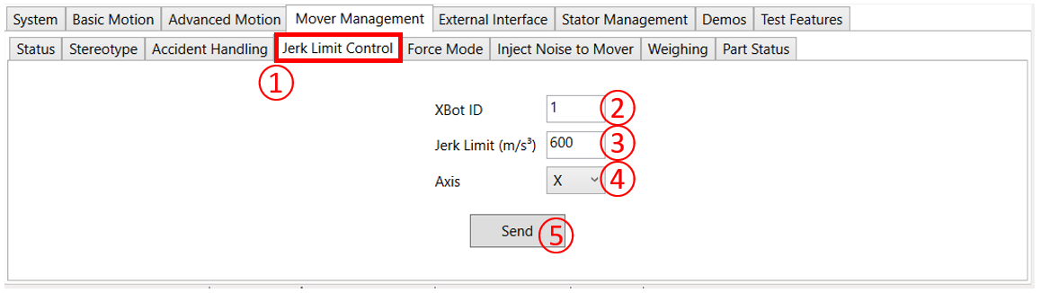 ② Enter the ID of the XBot you want to set the jerk limit for
