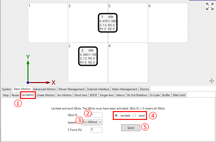 ② Enter the ID of the XBot you want to levitate. “0” means all XBots