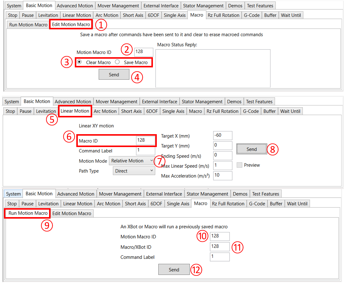 ⑫ Click Run Motion Macro when ready, this will save the macro and make it ready to execute