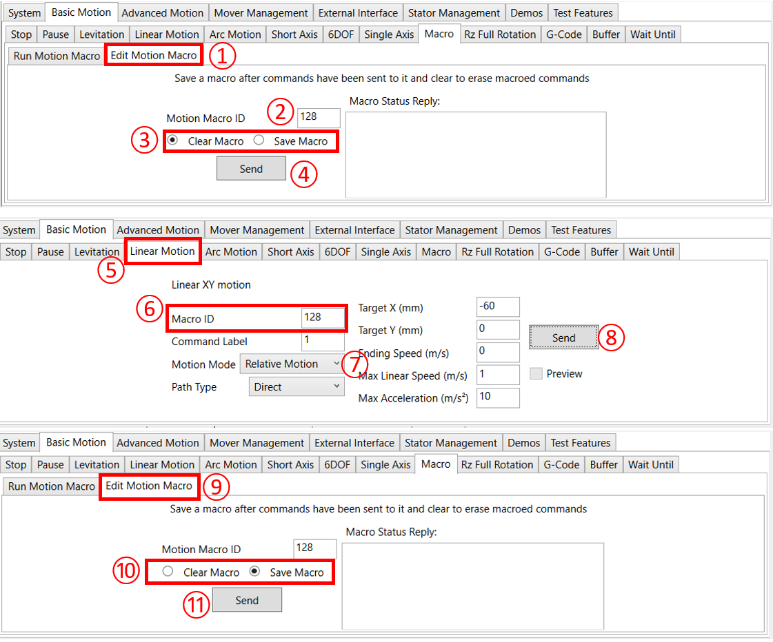 ⑫ In the Run Motion Macro panel, enter the Macro ID to be executed