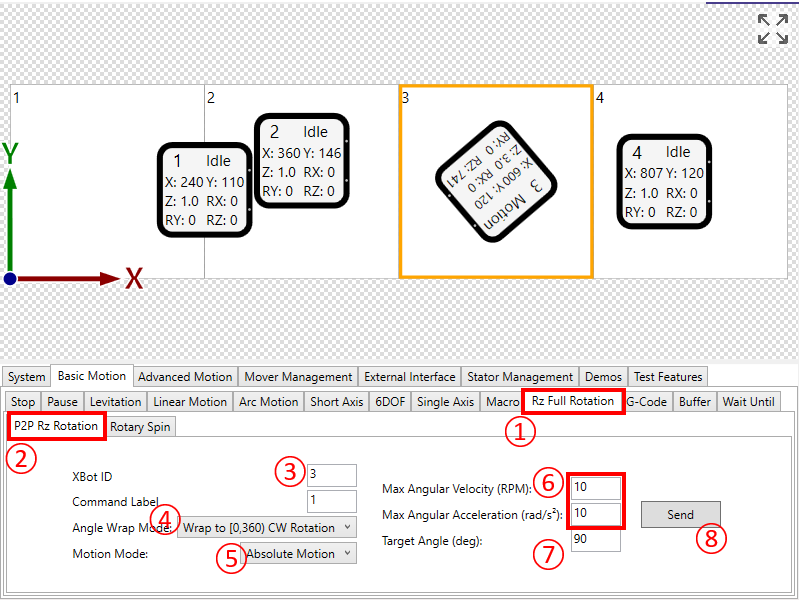 ⑤ Choose whether the motion will be absolute or relative to the current XBot position
