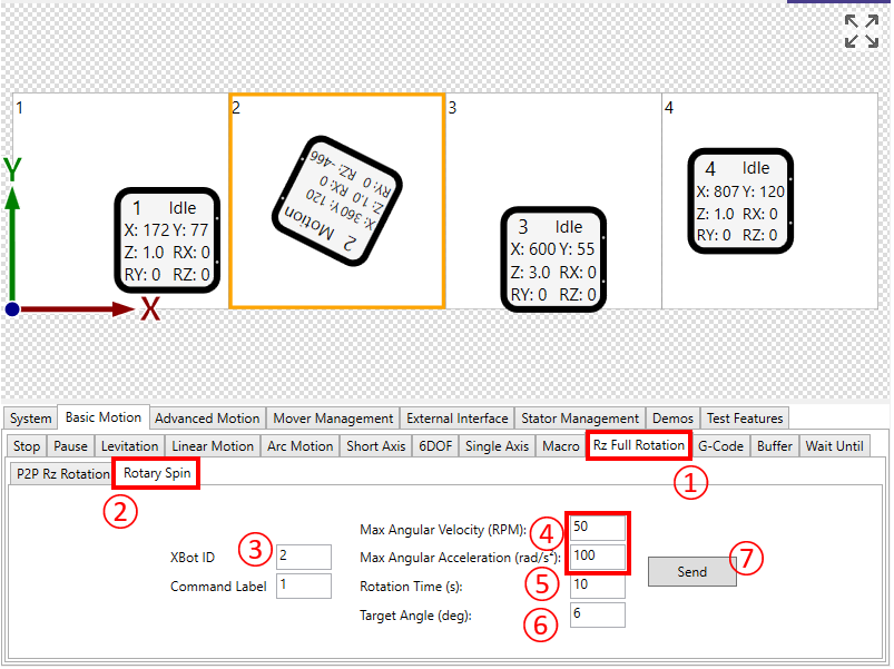 - The XBot will spin in the counter clockwise direction, for the entered amount of time and will stop at the target angle.