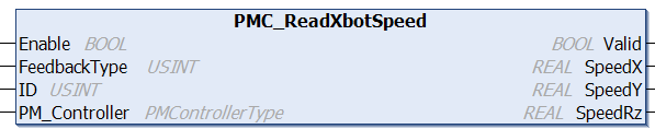 Enable | BOOL | Set enable to TRUE to execute the function block, FALSE to stop execution. |