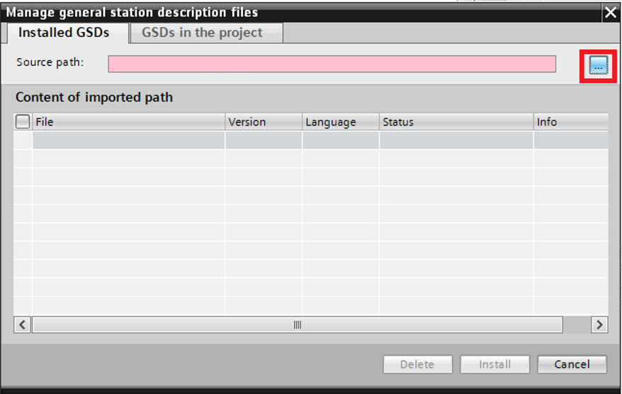 Step 2: In the Manage general station description files click "…"