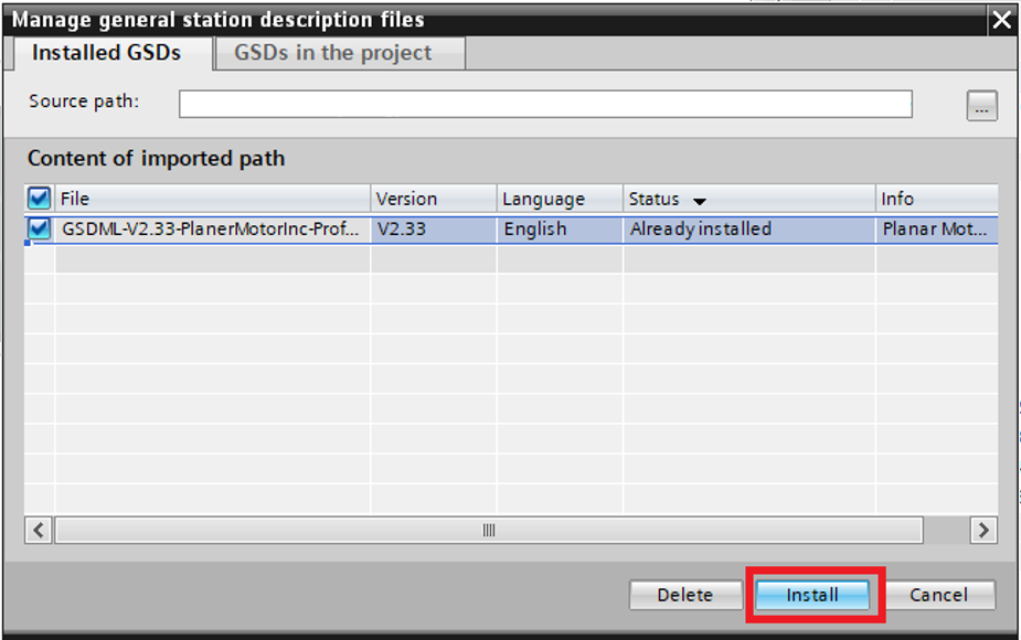 Step 4: Select the PMC GSD and then click "Install"