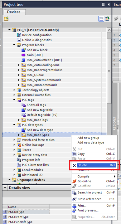 Step 6: Drag and drop the new PMC_BaseTags folder to the PLC data types folder