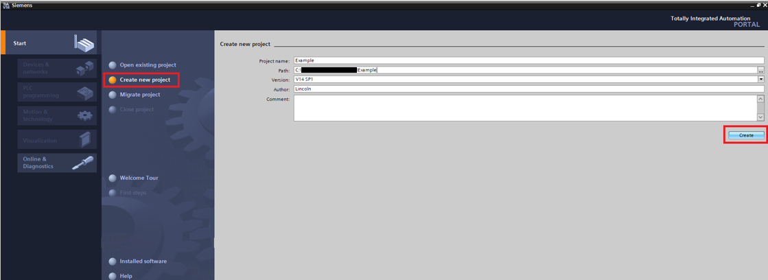 Step 1: In the start screen click Create new project. Choose a name and path for the project then click "Create"