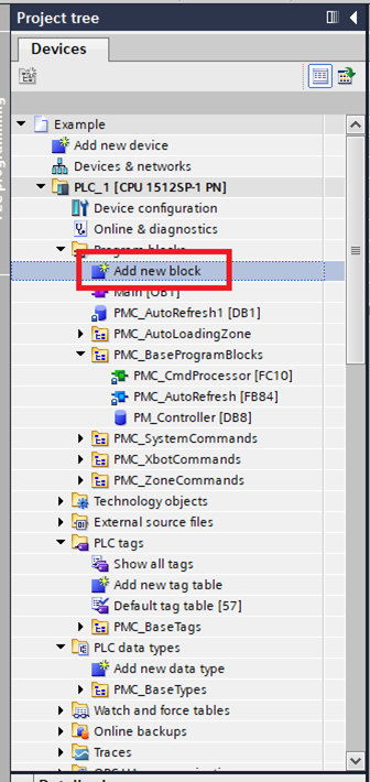 Step 9: Click "Add new block" in Program blocks folder