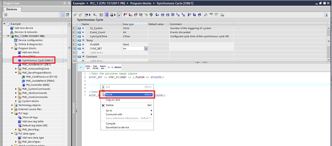 Step 17: Then paste the PMC related code into the "Synchronous Cycle" block.