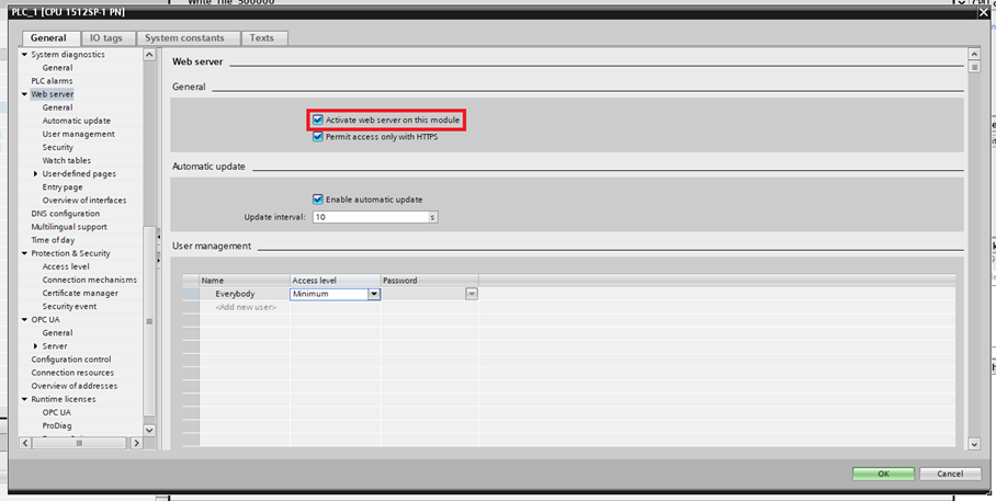 Step 2: In the General tab select Web server and click Activate web server on this module.