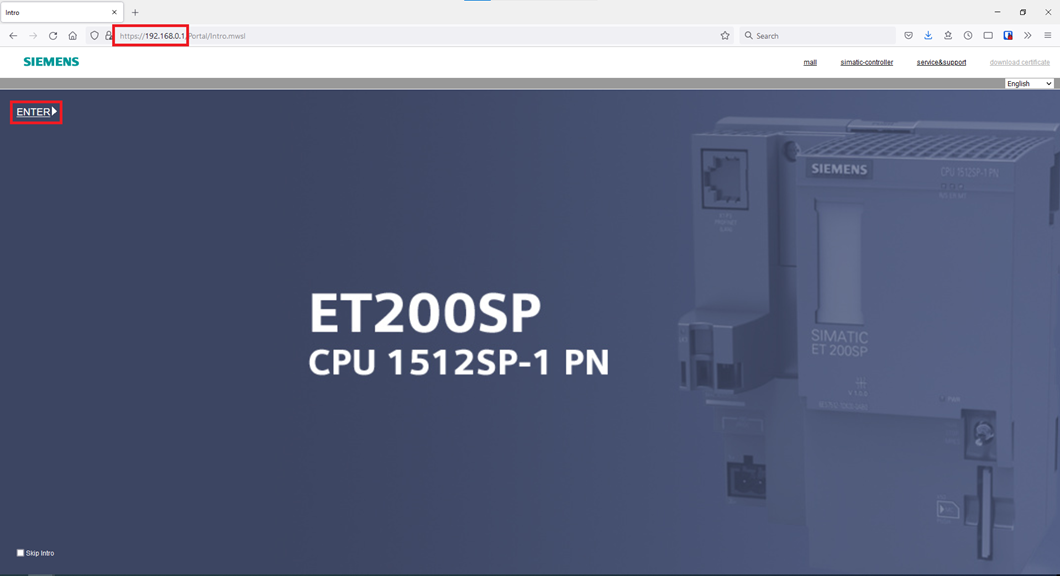 Step 6: To access the PLC web server, type the PLC’s IP address into a web browser. Once the intro page appears click ENTER.